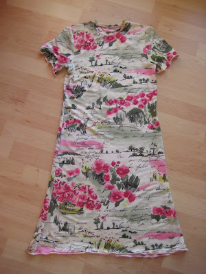 Das Stoffstück war breiter und irgendwie war mir beim Zuschneiden dann auch schon klar das Kleinchen diesen Stoff nicht als Shirt anziehen wird. Also hab ich es gleich länger gelassen und nun ist es ein Nachthemd geworden