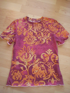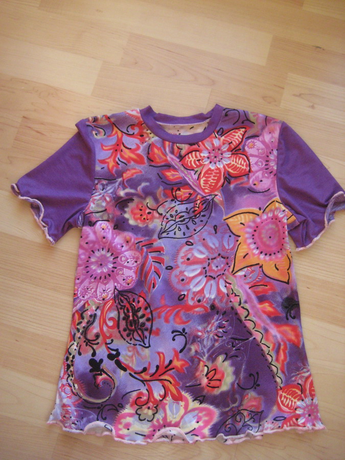 Letztens hab ich bei einem Resteverkauf ein paar, teilweise eigentümliche Reststücke Viskosejersey mitgenommen. Aus de Größe der Stücke lies sich eigentlich nix anderes machen als Shirts fürs Kleinchen. Der Antoia Shnitt lag ohnehin noch auf meinem Tisch.