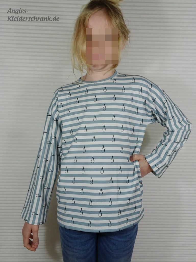 Besonders stolz bin ich übrigens darauf das die Streifen perfekt aufeinander treffen. Deswegen sehen wir bitte alle großzügig darüber weg das die Tropfen auf dem einem Ärmel in die falsche Richtung fallen, einverstanden? ☺