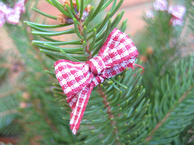 Die Tannenreste hab ich dann einfach in eine Vase gesteckt und mit Mini Schleifchen geschmückt. Das steht in der Küche auf dem Tisch.
