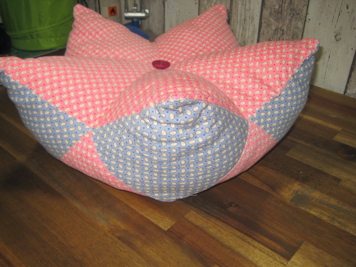 Ein Sternenkissen. Ich soll euch erzählen das Kleinchens Mama das schon ganz oft gesehen hat und das ihr innerer Lemming sie dann auch eins machen lassen hat. Keine Ahnung wer dieser Lemming ist, den kenn ich nicht, aber ich gebs mal so weiter.
