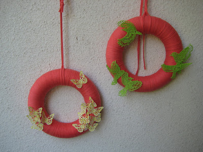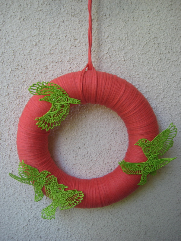 Dazu hab ich Filzreste in Streifen geschnitten, mit Stylefix aufgeklebt und das ganze mehrmals mit buntem Bluemnwickeldraht umwickelt.