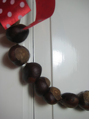 Zusammen mit Kleinchen habe ich Kastanien zu einem neuem Türkranz verbastelt. Gefädelt hat das Kind, gebohrt habe ich. Das ging erstaunlich einfach mit dem kleinem Akkuschrauber mit Bohreraufsatz.