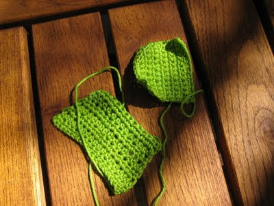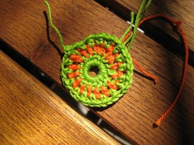 Der Kranz ist gespickt mit kleinen Häkelblümchen. Einen Teil hat Kleinchenoma dazu beigesteuet. Einige hab ich selbst gemacht.