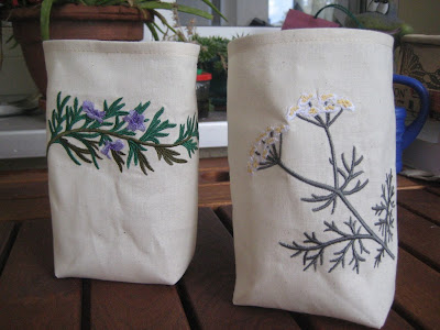 Da ich sowieso gerade Tischsets mit Kräutern bestickt hab, hab ich die Probestücke gleich sinnvoll verwertet.