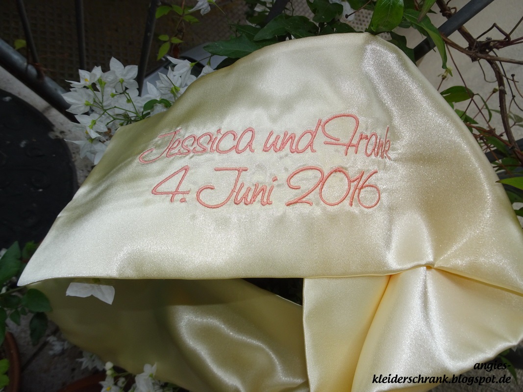 Ab und zu hat Nue einen Auftrag für mich. Sie macht freie Trauungen. Und wenn es da was zu Sticken gibt, dann übernehme ich das 😉