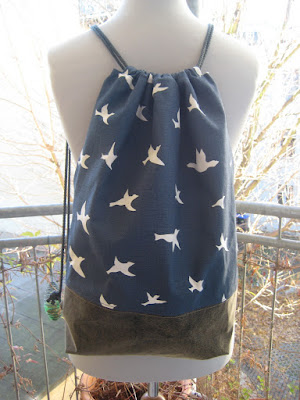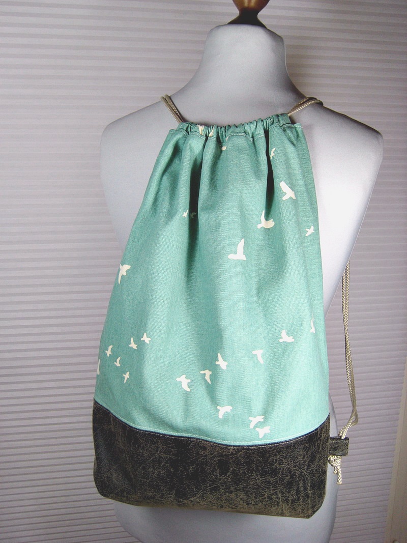 Nochmal eine Bullaugentasche mit Vögeln. Als Besonderheit hat diese Tasche eine extra Reißverschlußtasche auf der Rückseite.
