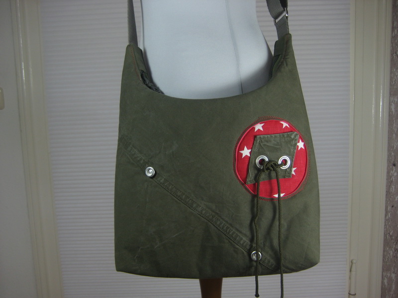 Hier hab ich mal bewusst so zugeschnitten das von dem ursprünglichen Verwendungszweck noch was übrig geblieben ist. Sogar mit einem orginalem Army Reissverschluß. Der hat mich dann auch eine Nadel gekostet……
