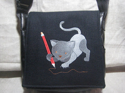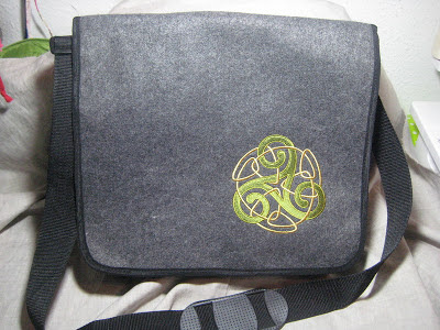 Bei dieser hab ich den Deckel aufgemacht, eine grandiose Kontruktion hinter meiner Stickmaschine aufgebaut, damit die Taschen nicht alles runterzieht und bestickt. Hinterher hab ich dann einfach (haha, toller Scherz) den Deckel wieder zusammengenäht.