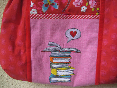 Jetzt hab ich eine kleine, einfache Pflastertasche genäht. Die ist so klein, das sie ganz bequem im Ranzen Platz findet..