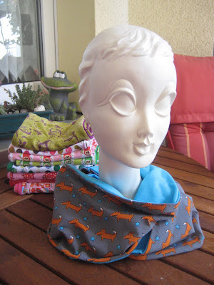 genauso einen Apfel-Schlupfschal habe ich heute auch genäht. *lach*