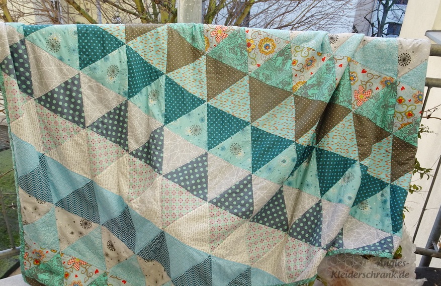 Und weil ich viel zu viele Dreiecke zugeschnitten hatte, hab ich noch drei Kissenhüllen fürs Sofa passend dazu gemacht.