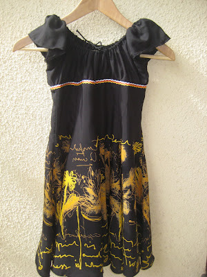 Und heute kam dann der Ruck. Kleinchen fand das Kleid plötzlich doch total klasse, nachdem ich ihr erklärt hab, das es sich noch besser dreht, weil ich eine Bahn mehr eingesetzt habe. Das hat überzeugt. Sie hat dann eine dreifarbige Zackelitze ausgesucht und unten hab ich jetzt einfach einen Rollsaum dran, denn es lies sich nicht wirklich gut säumen.
