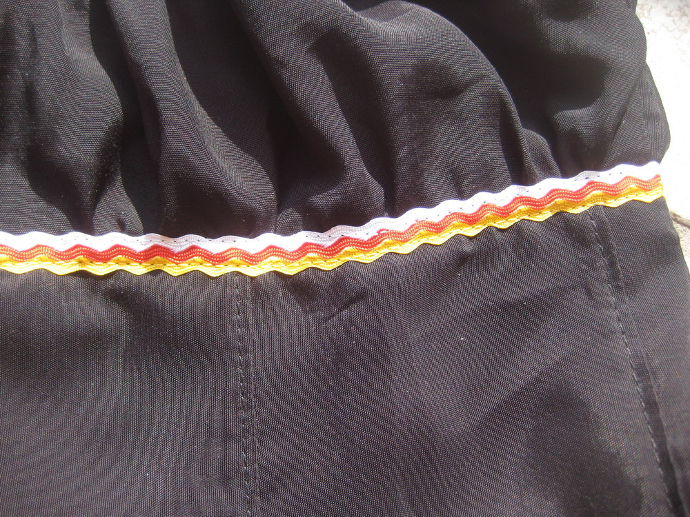 Dann hing es fast fertig knapp eine Woche am Schrank, weil ichnicht wußte was ich für ein Band auf die Naht am Oberteil setzten sollte.