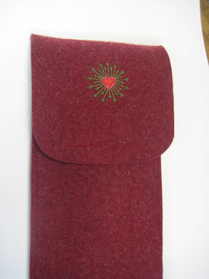 Geworden ist es dann eine Hülle aus Wollfilz mit Stickerei. Das ganze Ding ist jetzt so lang das ich Schwierigkeiten hatte das ganze schön ins Bild zu bekommen.