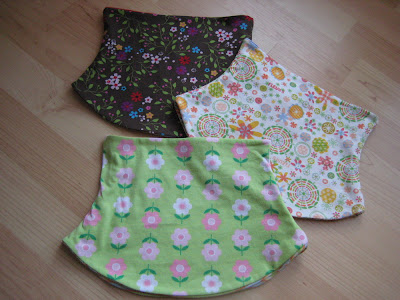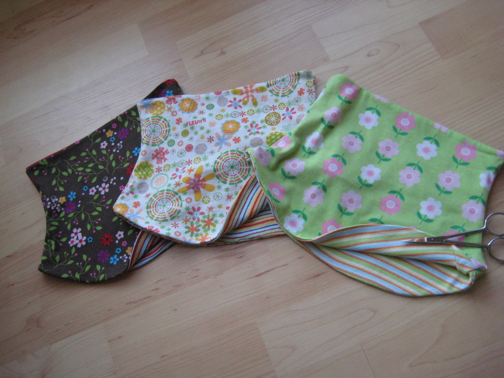 Da waren noch drei sehr geliebte, aber viel zu kleine Schlafanzüge. Zunächst hatte ich die Füße abgeschnitten und an die Beine Bündchen drangenäht. So haben sie noch länger gepasst.