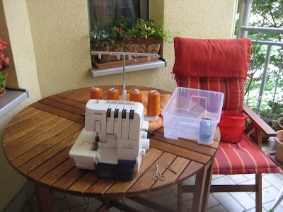 Sieht schon gemütlich aus. Allerdings hab ich das nur gemacht um den riesen Stoffberg der hinter der Maschine liegt in Schach zu halten. Das werden Vorhänge fürs Kinderzimmer.