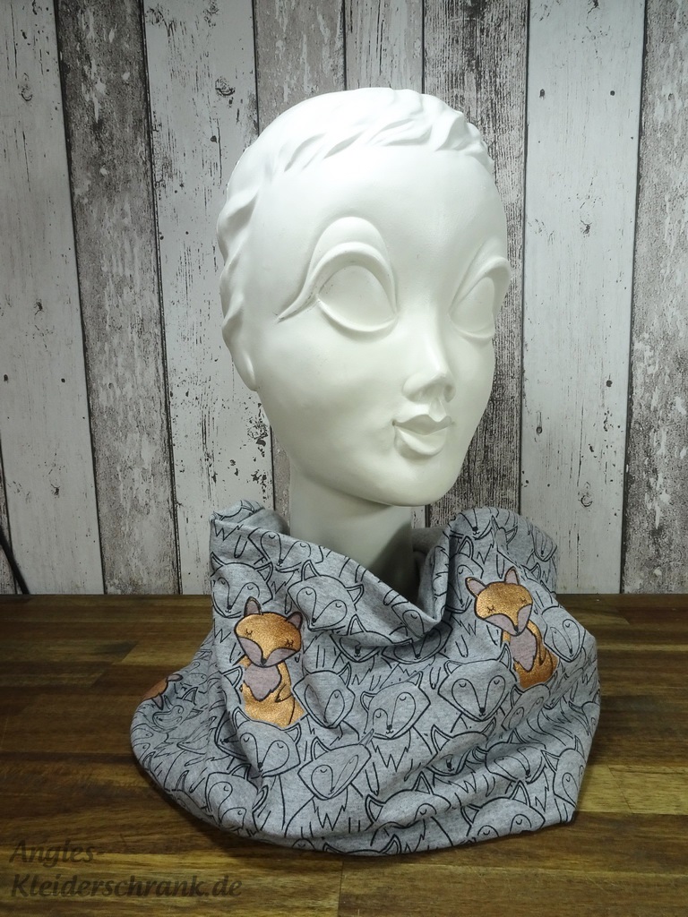 Den Stoff hab ich von der allerliebsten Nähkollegin. Leider habe ich ihr nicht noch mehr davon abschwatzen können, aber lieber einen Loop mit Glitzerfüchsen als gar nix. 😉
