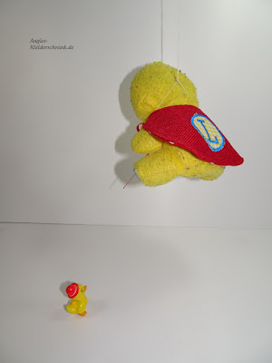 Jetzt war die am Flügel verletzt und weil sie so Angst hatte, habe ich ihr einen Superhelden Umhang versprochen, wenn sie ganz tapfer mitmacht.