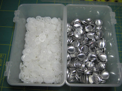 Ich habe eine Presse und passendes Werkzeug dafür. Man braucht für jede Knopfgröße ein anderes Werkzeug. Die bekanntesten sind wohl die von Astor. Aber es gibt die auch von anderen Firmen.
