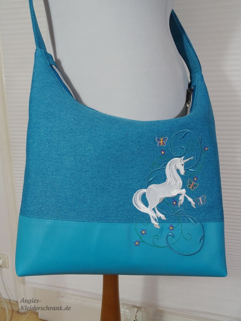 Nachdem die andere blaue Einhorntasche so schnell eine neue Besitzerin gefunden hat, hab ich nochmal eine neue gemacht.