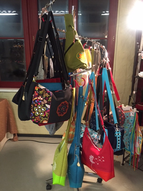 Das hier ist mein Taschenständer. Taschen nähe ich ja irgendwie doch am liebsten. Allerdings nähe ich die schneller als ich die verkaufe.