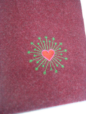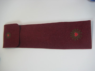 Geworden ist es dann eine Hülle aus Wollfilz mit Stickerei. Das ganze Ding ist jetzt so lang das ich Schwierigkeiten hatte das ganze schön ins Bild zu bekommen.
