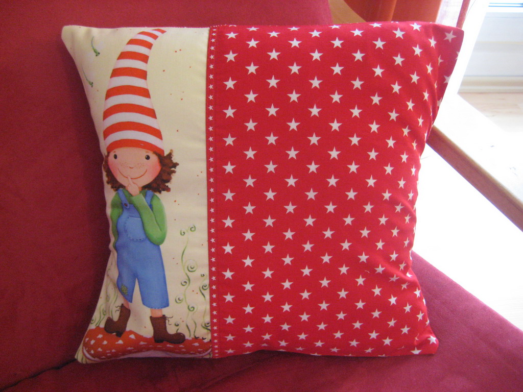 Wichtelkissen mit einer der kleinen Gesellen der Wichtelfabrik