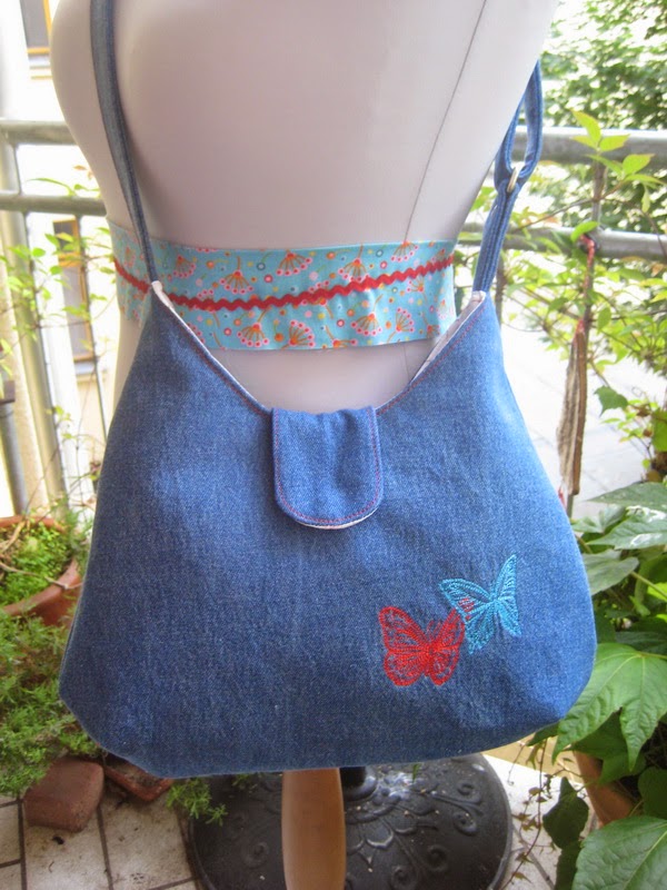 Ok, wo der Phoebe Schnitt hier schon so rumlag hab ich gestern abend als der Rest der Republik Fußball geschaut hat, noch eine Tasche zugeschnitten. Diesmal aus Jeansstoff.