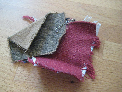 Aber zur Ehrenrettung kann ich noch anbringen das mir die ganze Zeit die dritte Farbe fehlte.Eine braune Hose hatte ich schon von ihr bekommen, eine dunkelrote hab ich im Seconnd Hand Laden geschnappt und das wars dann. Ich hab einfach keinen passenden dritten Stoff gefunden. Dabei hatte ich sogar kleine Musterstücke ständig in meiner Handtasche.