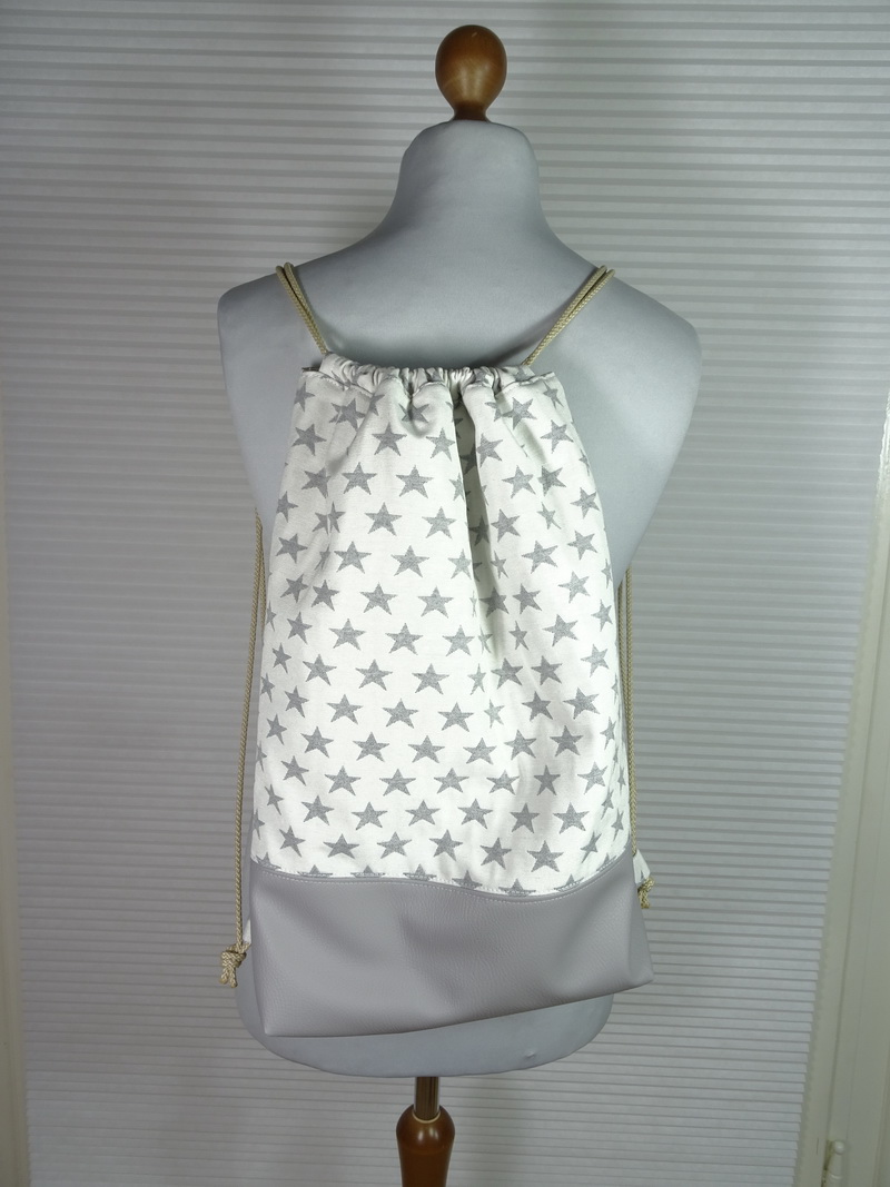 Als ich diesen Turnbeutel genäht habe, hab ich mir beim Zuschneiden gleich gedacht, den muß ich nochmal „andersrum“ machen. Also die helle Seite nach außen.