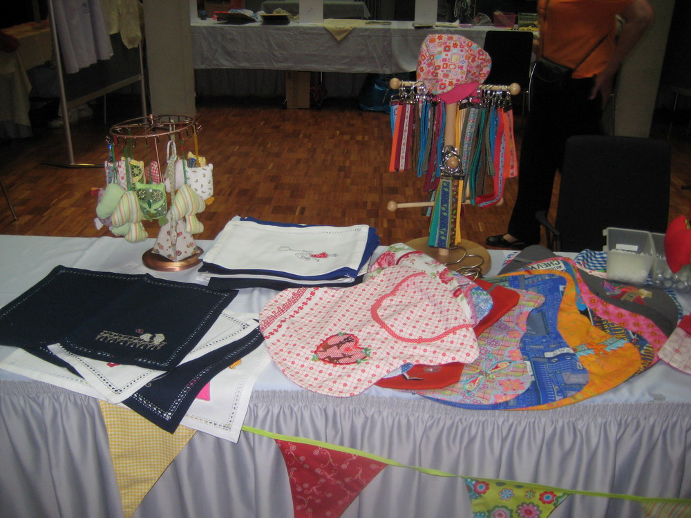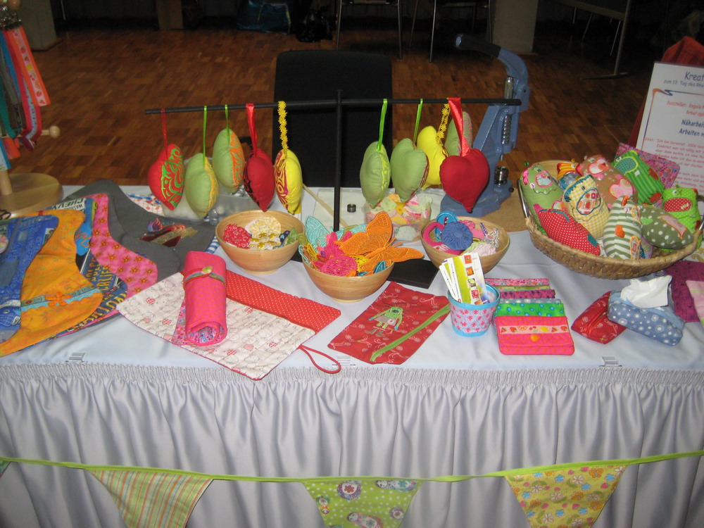 Weil ich keine Lust hatte die ganze Zeit so sinnlos rumzusitzen, hab ich mir meine Knopfpresse mitgenommen. Außerdem dachte ich das die Leute eher schauen, wenn dort etwas passiert.